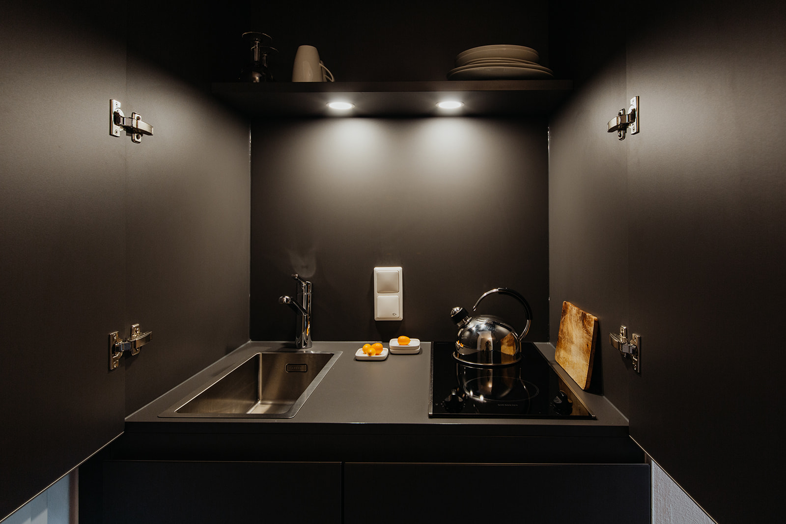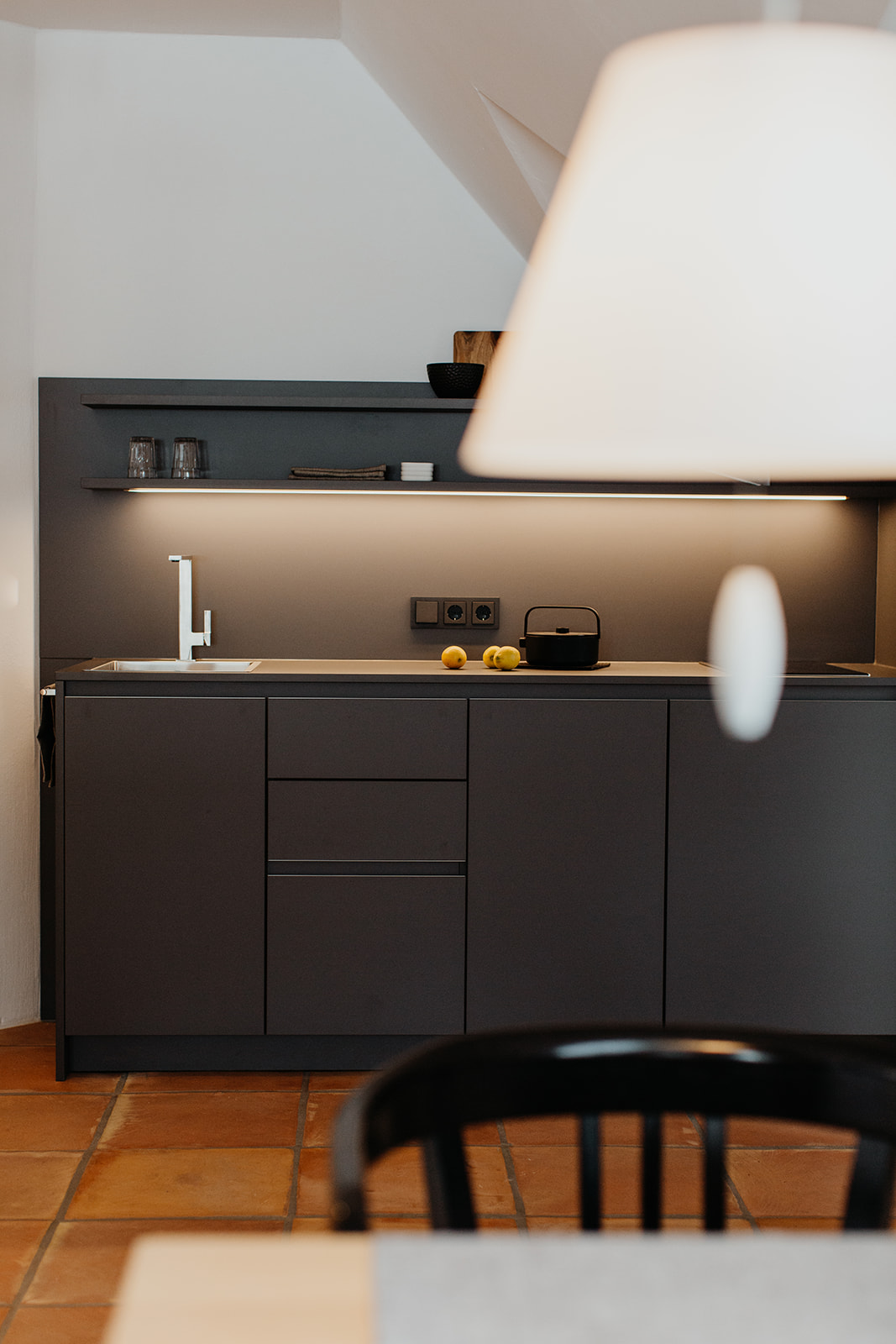 Ausstattung: gemütlicher Wohnraum mit Küchenzeile