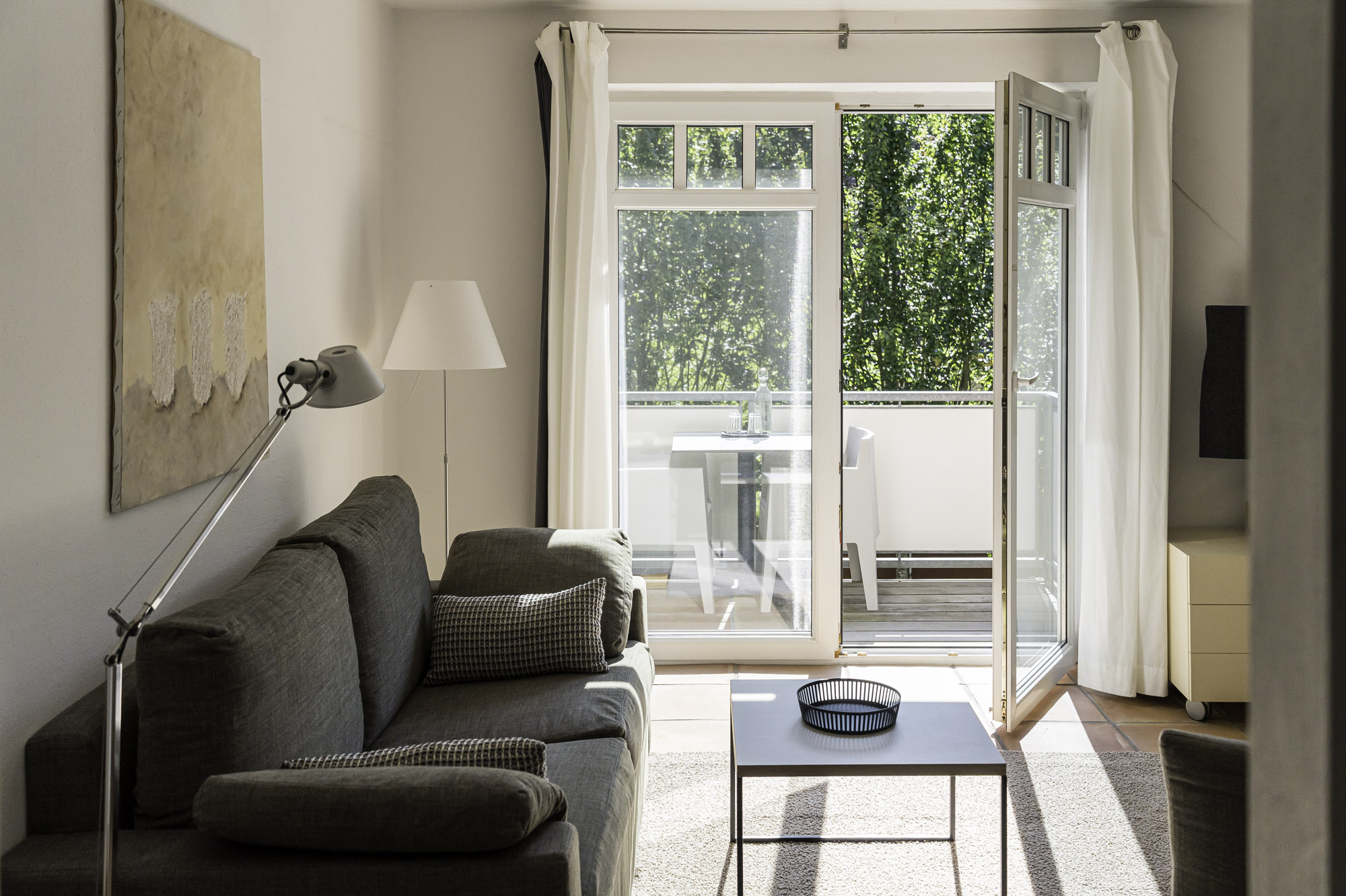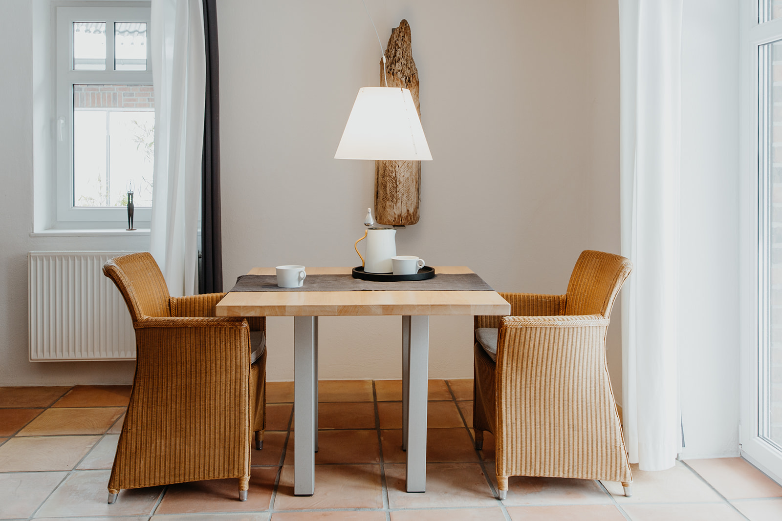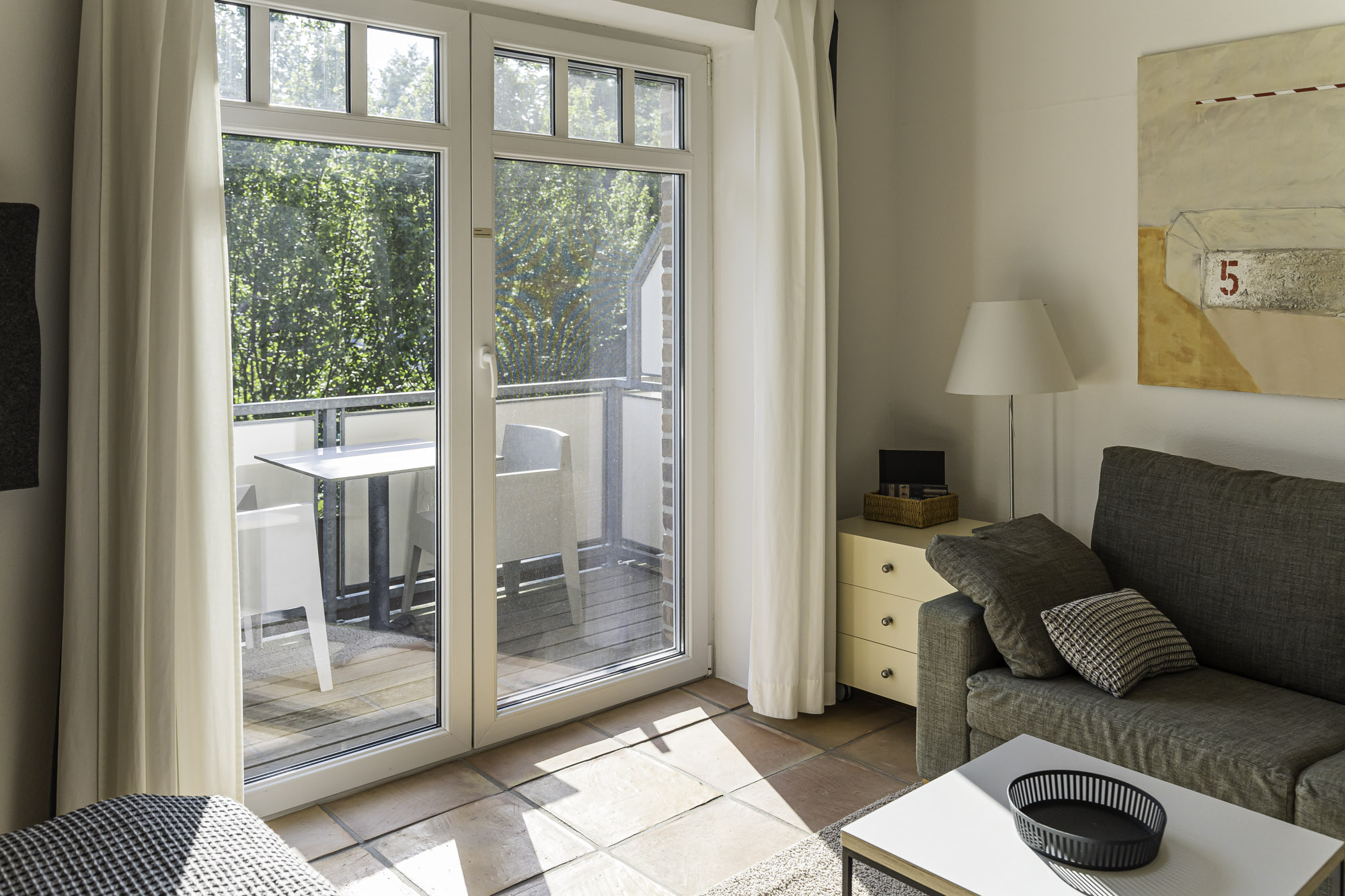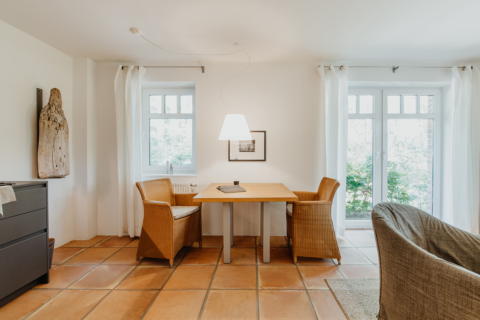 Ausstattung: gemütlicher heller Wohnraum mit Gartenblick