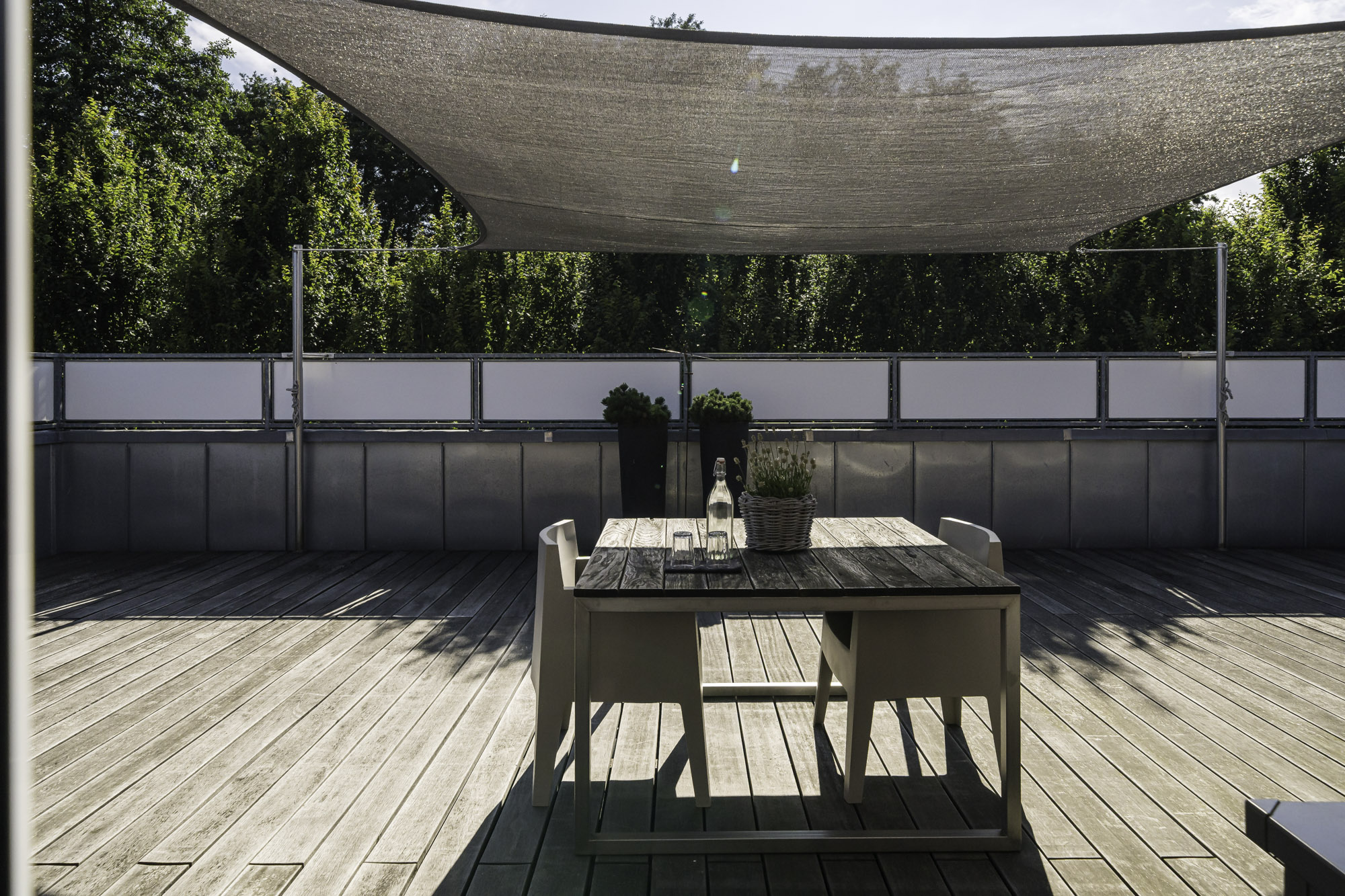 Dachterrasse 90 qm mit Sonnenliegen, Tüchern u. Sonnensegel