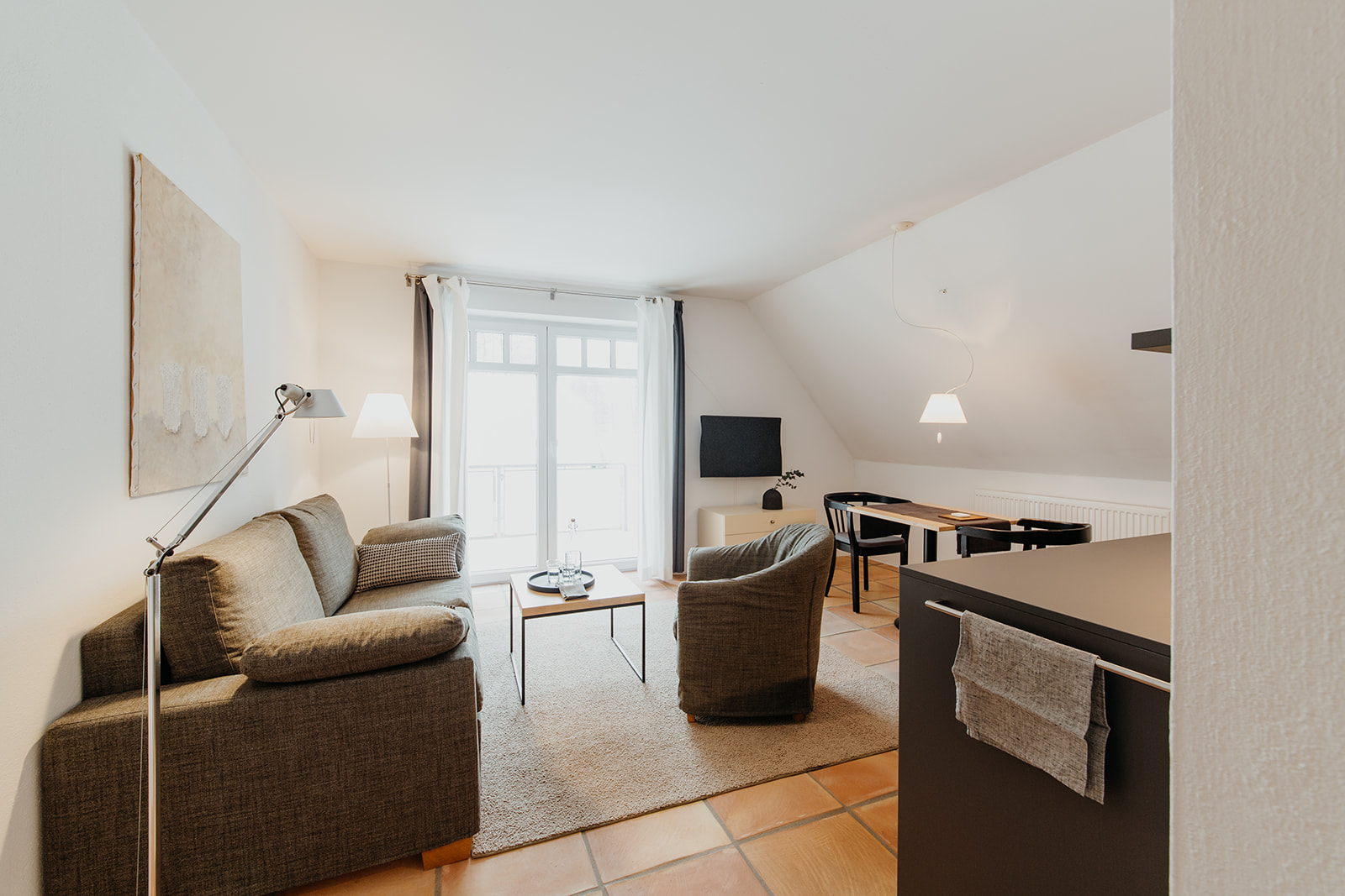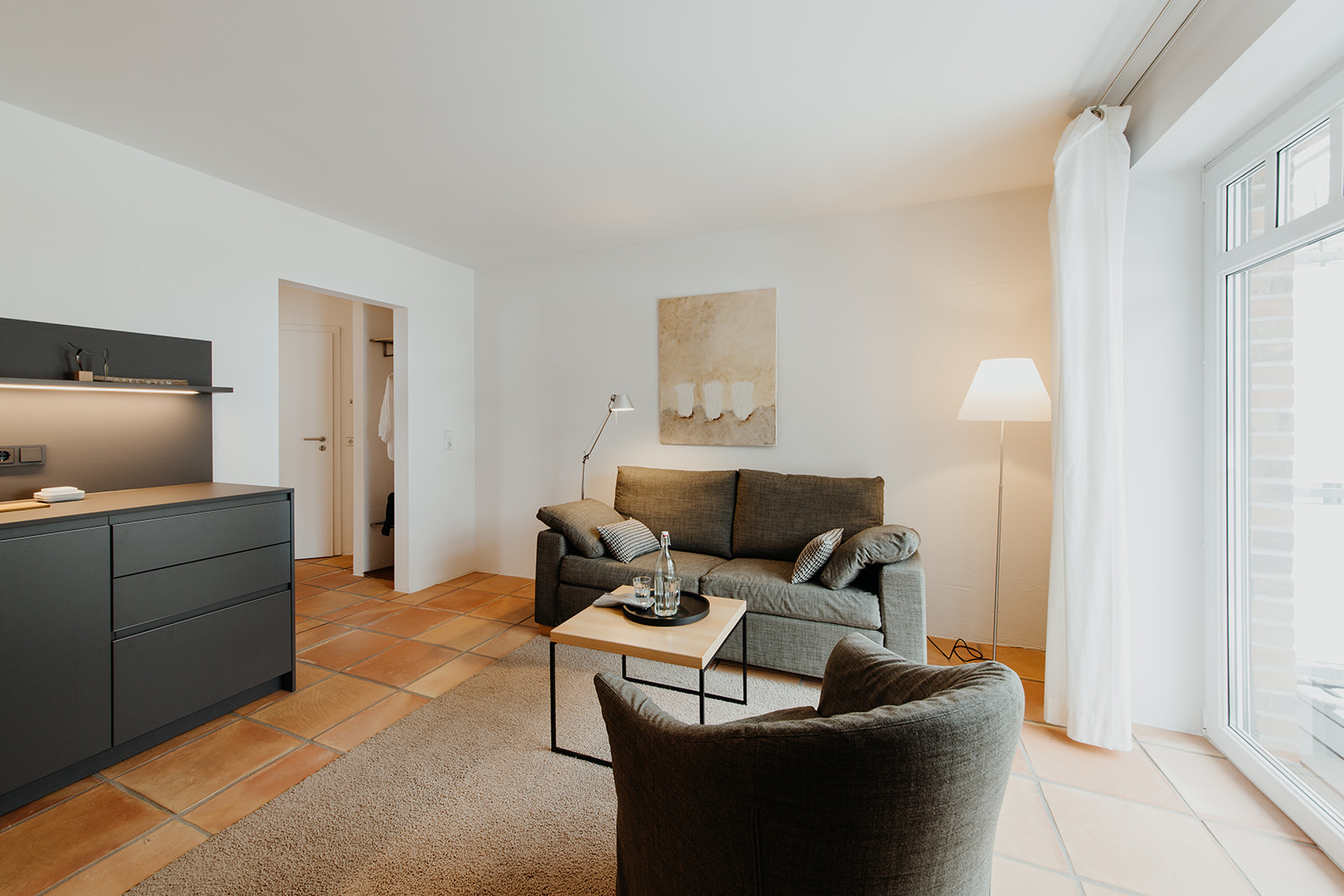 Ausstattung: gemütlicher heller Wohnraum mit Küchenzeile