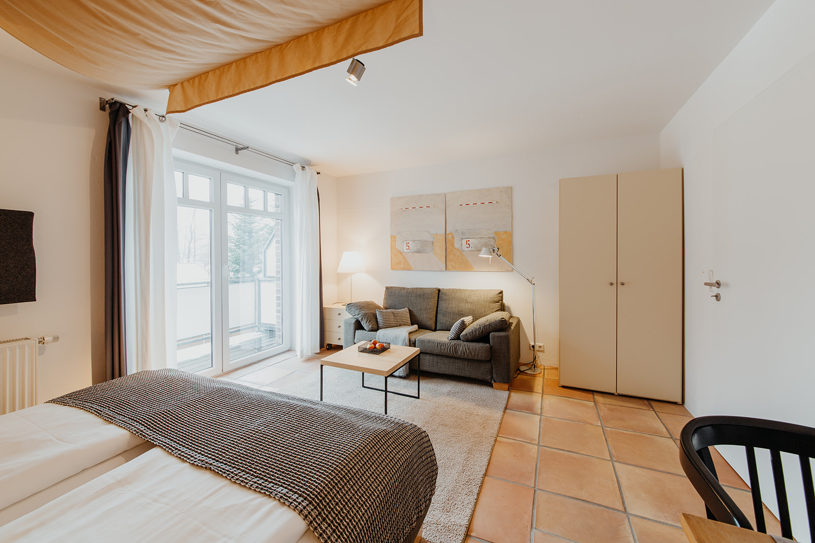 Ausstattung: gemütlicher Wohnraum mit Doppelbett